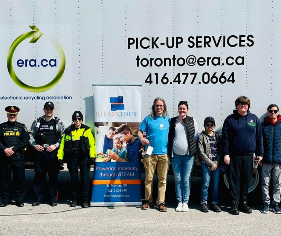 The Electronic Recycling Association (ERA) teamed up with the St. Thomas Police Service on April 8th, 2023 for a Fraud Prevention Event. Members of the St. Thomas, Ontario, community brought down unwanted electronic devices such as hard drives, computers, laptops, phones, tablets, tapes and other small devices storing sensitive data to securely destroy and recycled the electronics for FREE.