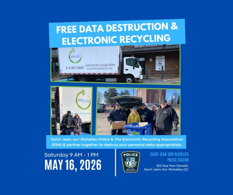 The Electronic Recycling Association (ERA) is proud to partner once again with the Saint-Jean-sur-Richelieu Police…