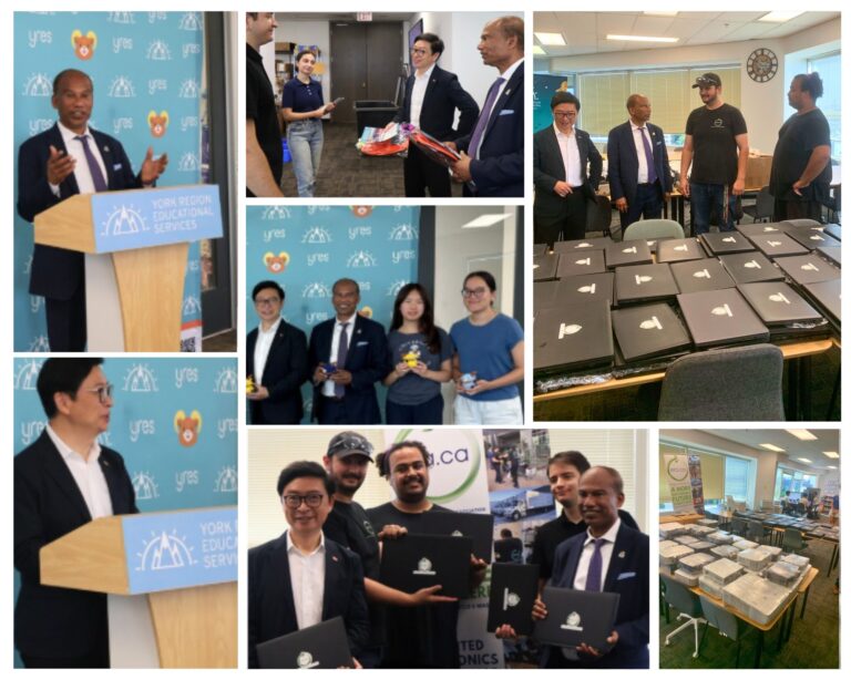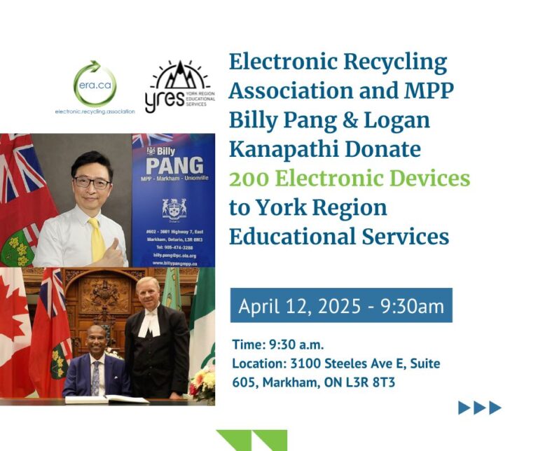 Electronic Recycling Association and MPPs Billy Pang & Logan Kanapathi Donate 200 Refurbished Devices to York Region Educational Services