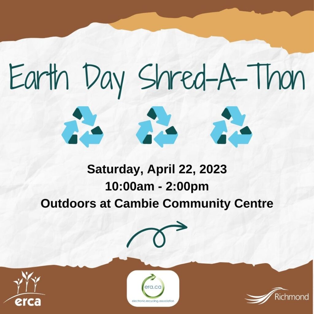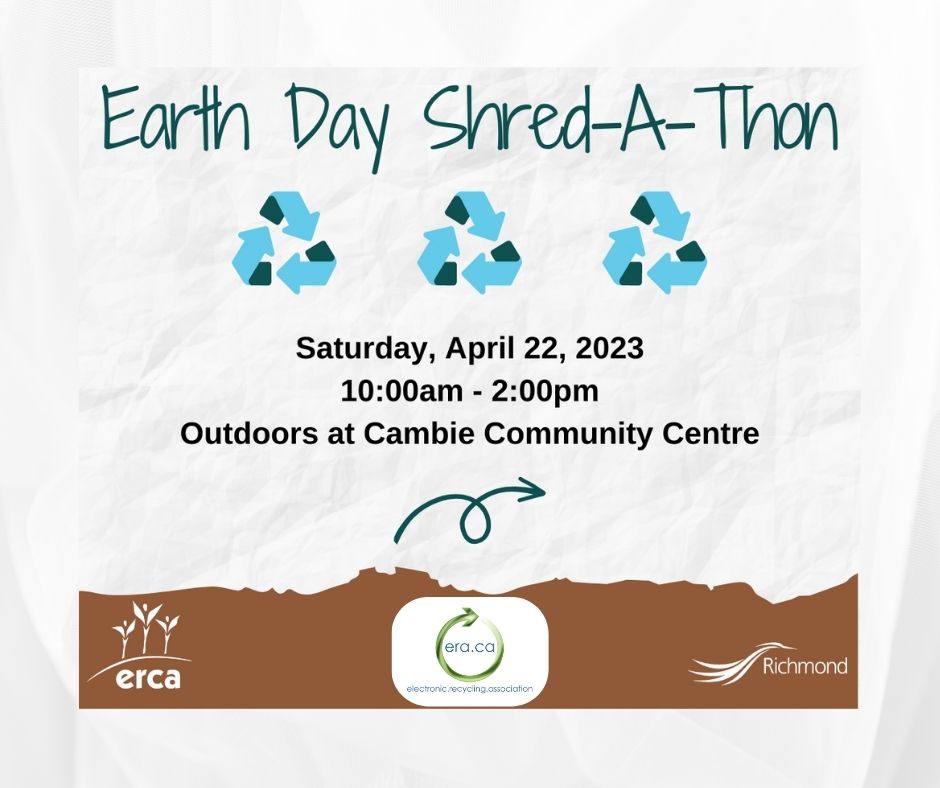 The Electronic Recycling Association (ERA) is excited to be part of the Cambie Community Centre, Shred-A-Thon event on Saturday, April 22, 2023. In addition to shredding service for paperwork with personal information, you can also bring your unwanted electronics for recycling. Please drop off your unwanted electronics & the ERA will work to refurbish collected items and donate them to organizations and individuals in need!
