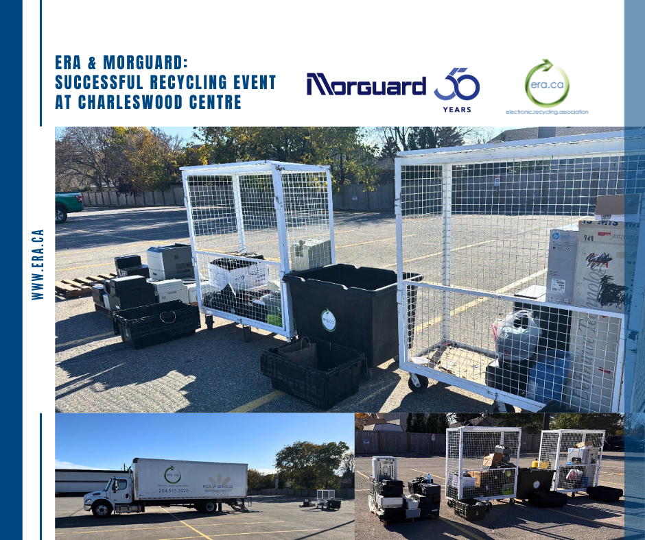 The Electronic Recycling Association (ERA), together with Morguard Real Estate Investment Trust, successfully hosted a Free Electronics Recycling Collection Event at Charleswood Centre in Winnipeg. This collaborative initiative brought the community together to support responsible e-waste management – and the results were truly impressive.