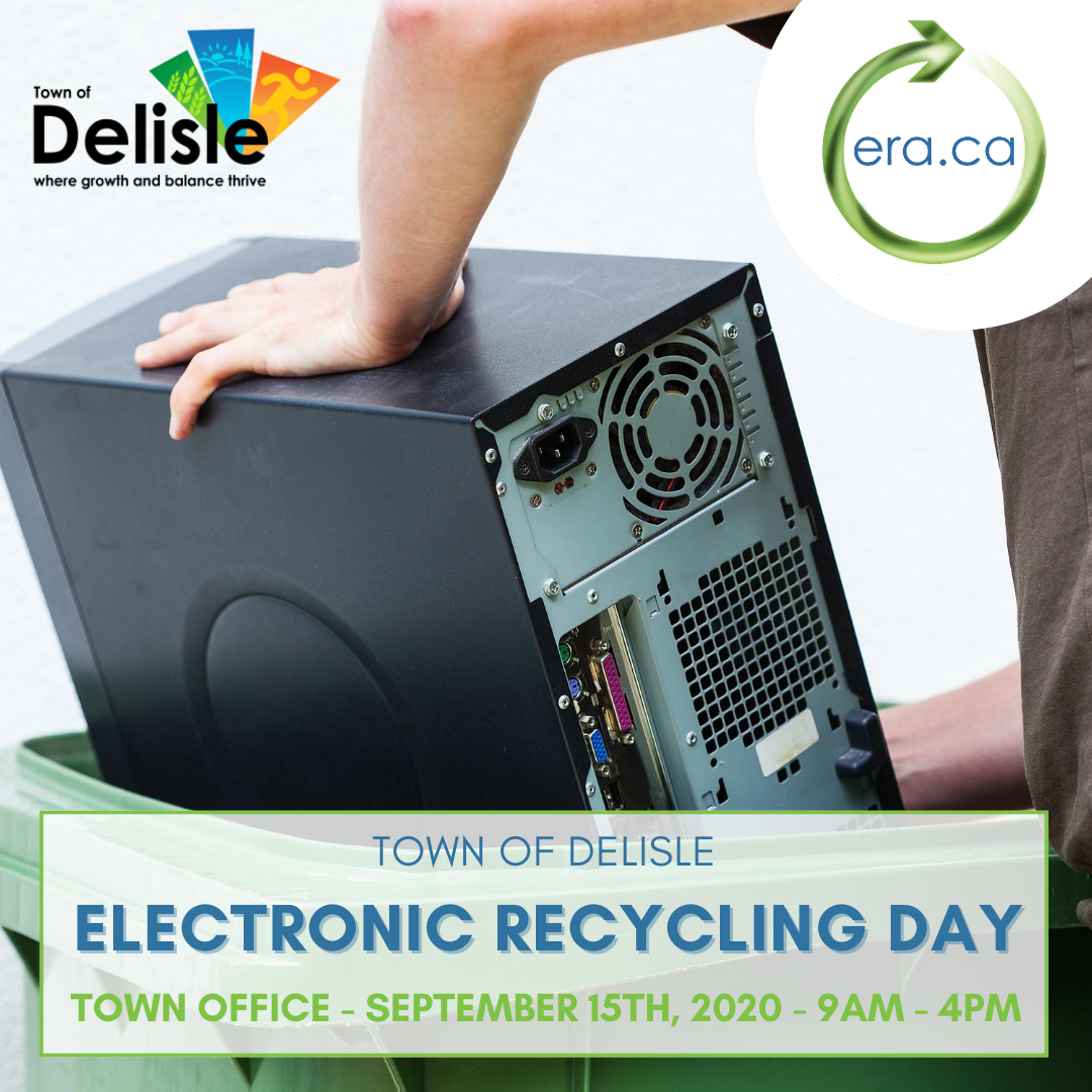 ERA has partnered with The Town of Delisle to help its residents safely dispose of e-waste. Drop by the town office on Tuesday with your unwanted computers, laptops, phones, etc and the ERA will work to refurbish collected items to donate to organizations and individuals in need!