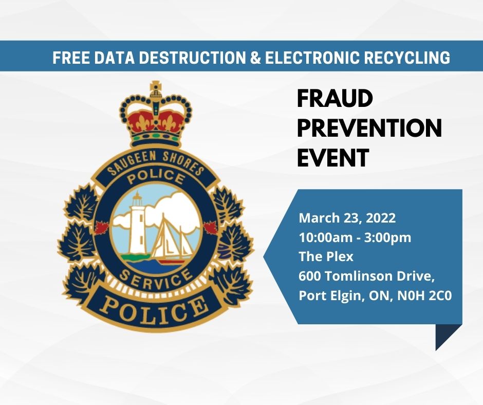 March is Fraud Prevention Month, and the Saugeen Shores Police and the Electronic Recycling Association (ERA) are partnering to help citizens protect their private information after data destruction.