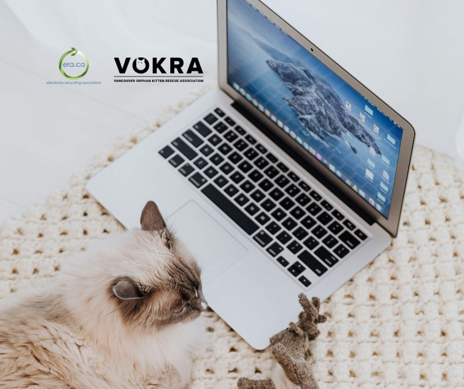 The Electronic Recycling Association (ERA) is proud to support another impactful community organization through the reuse of refurbished electronics. Recently, ERA donated a desktop computer and a laptop to the Vancouver Orphan Kitten Rescue Association (VOKRA) in Vancouver, BC.