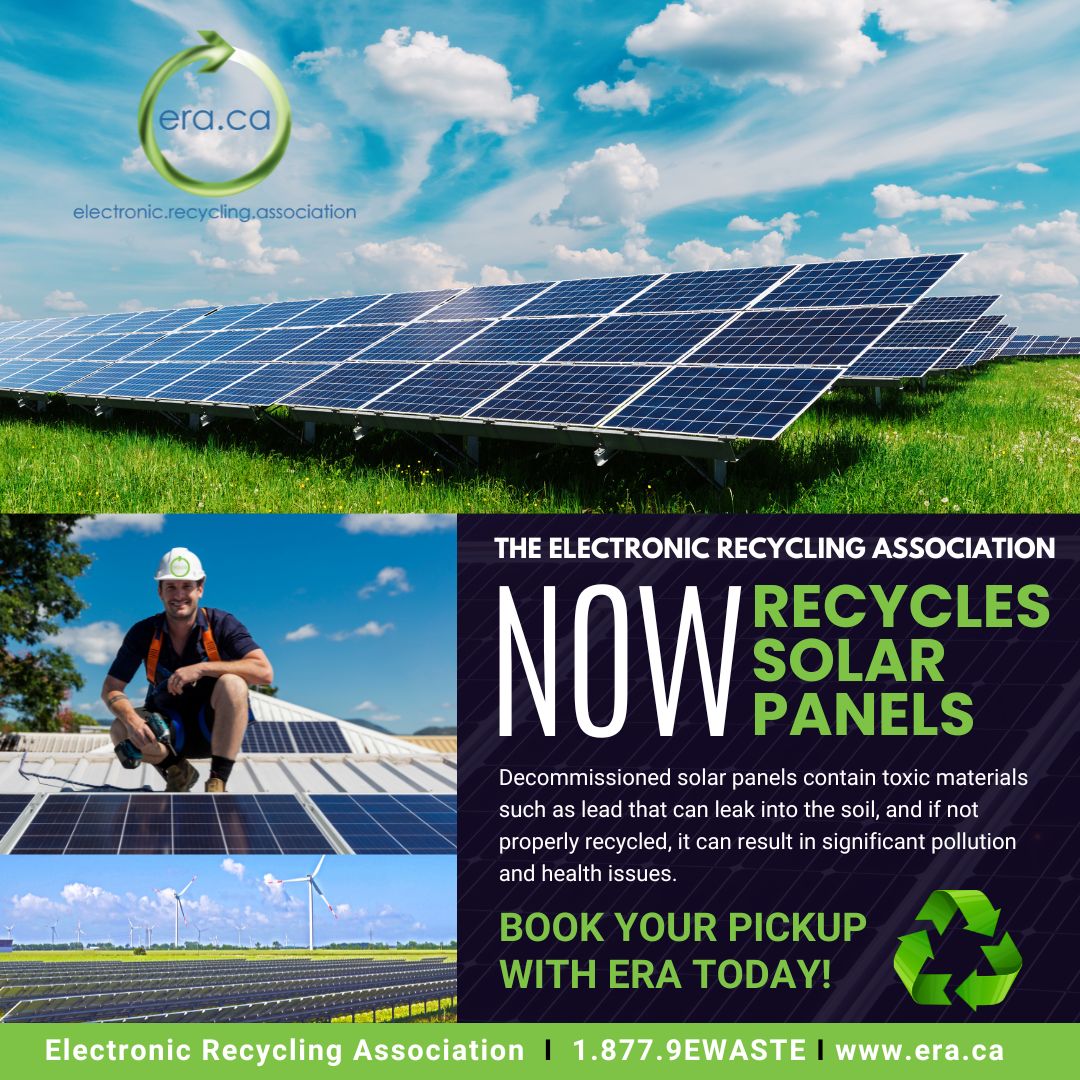 Solar panels are an increasingly important source of renewable power but they are also complex pieces of technology that become big, bulky sheets of electronic waste at the end of their lives. They contain toxic materials like lead that can leach out as they break down, landfilling also creates new environmental hazards. And right now, most of the world doesn’t have a plan for dealing with them once its time for disposal…which is where the Electronic Recycling Association (ERA) comes in. We will recycle your decommissioned solar panels free of charge as long as they are not broken.