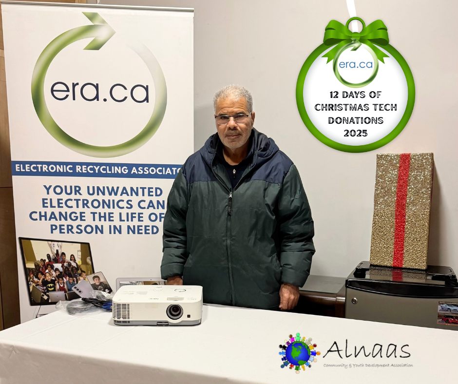 The Electronic Recycling Association (ERA) is proud to support Alnaas Community and Youth Development Association through the donation of one refurbished projector as part of ERA’s national 12 Days of Christmas Electronics Giving campaign.