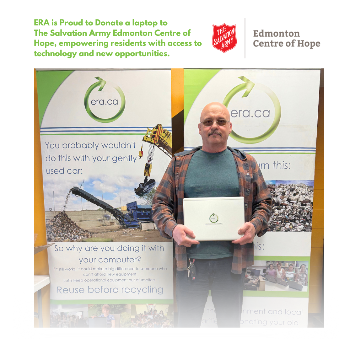 At the Electronic Recycling Association (ERA), we believe that access to technology is crucial for empowering individuals and strengthening communities. That’s why we are thrilled to support The Salvation Army Edmonton Centre of Hope with the donation of a high-end laptop. This contribution aims to provide residents with enhanced access to technology, bridging the digital divide and opening up new opportunities for growth and connection.