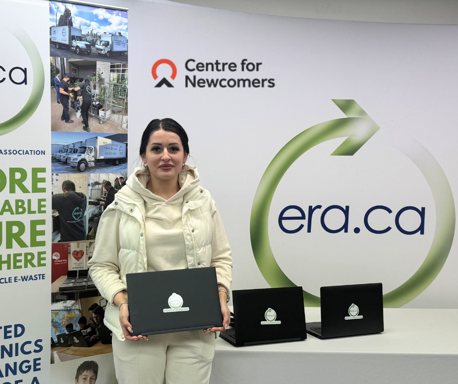 The Electronic Recycling Association (ERA) recently donated three refurbished laptops to the Centre for Newcomers, helping support newcomers with essential technology for education, employment, and community integration.