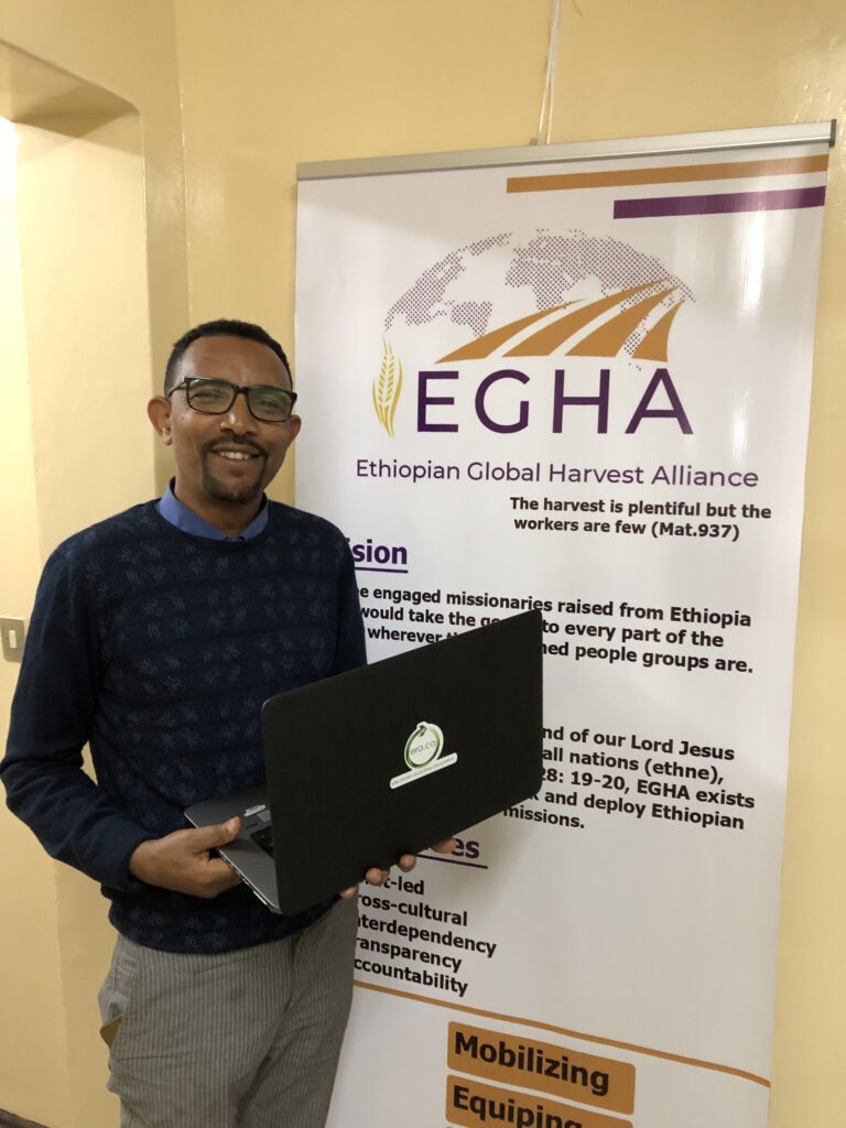 During his first to Ethiopia he donated a laptop to Pastor Abayneh, Director of Meserete Kristos Church’s (a denomination) missions department and a laptop to Rev. Gashahun, Director of the Ethiopian Global Harvest Alliance.