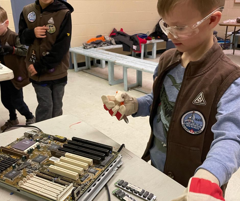 Recently Scouts Canada,144 Lake Bonavista Sea Scouts reached out to us for unusable electronics such as computers, VCRs, printers, stereos, and amplifiers so that Scouts can see what the inside of various electronics looks like. The ERA was happy to donate 12 pieces of unusable equipment.