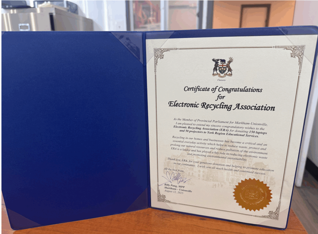 In honour of International Youth Day, the Electronic Recycling Association (ERA) proudly donated 200 electronic devices to York Region Educational Services (YRES). This contribution will directly support youth programs, providing students across the community with greater access to technology and digital learning resources.