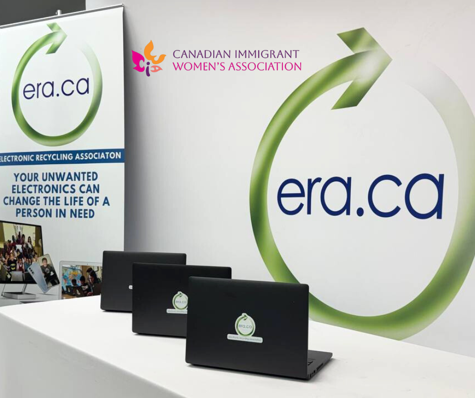 The Electronic Recycling Association (ERA) is proud to support the Calgary Immigrant Women’s Association (CIWA) through the donation of three refurbished laptops to its Family Resource Network (FRN) Program.