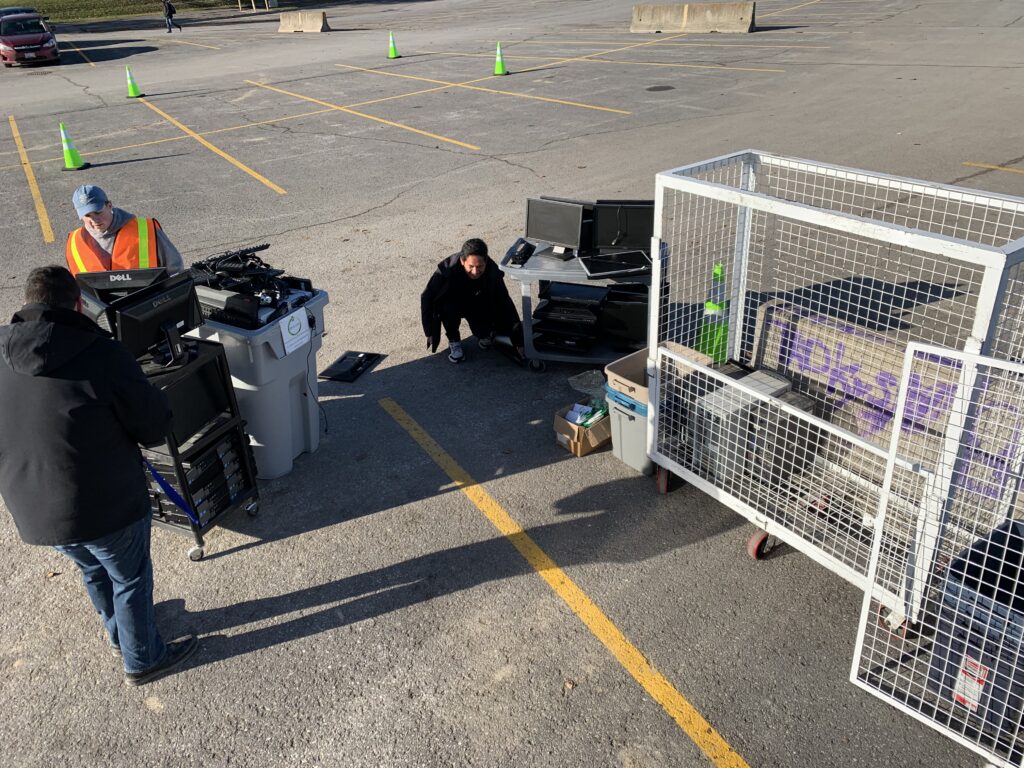 The Electronic Recycling Association (ERA) was thrilled to partner with Footprint, Enactus St. Lawrence College student volunteers, and community members for an electronic recycling event in Kingston, ON. On Saturday November 26th, 2022 vehicles came through St. Lawrence College front parking lot to donate unwanted electronic devices such as hard drives, computers, laptops, phones, tablets, tapes and other small devices storing sensitive data. After the event ERA’s technicians ensured that data from the devices is securely removed, operational equipment is refurbished for reuse, and the rest is recycled in a responsible manner.