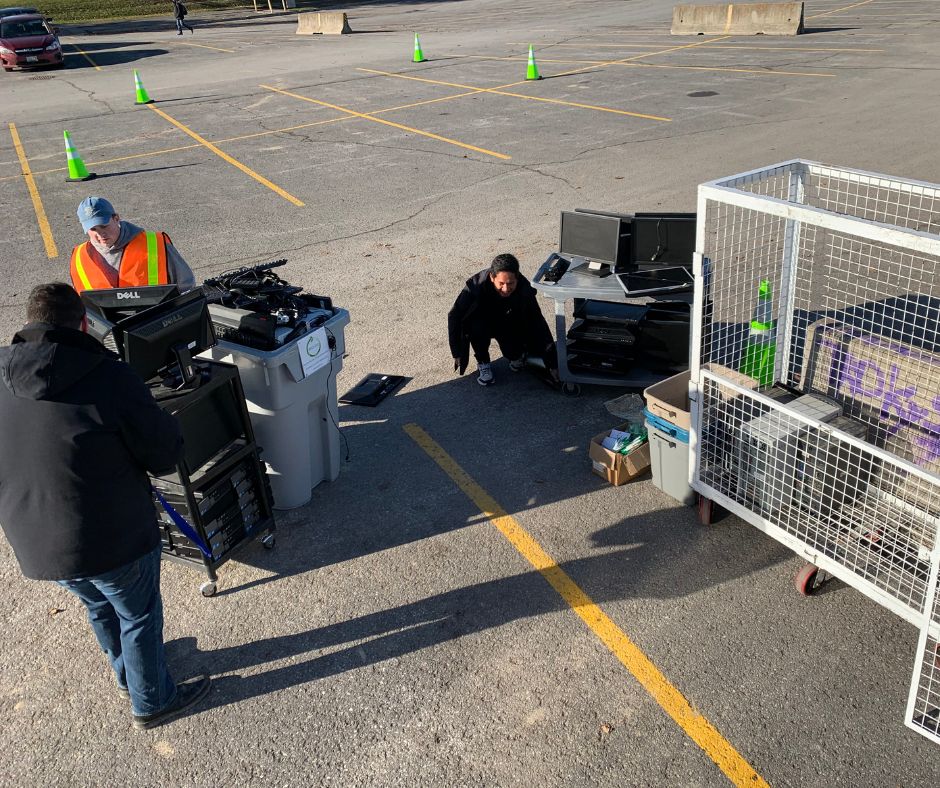 The Electronic Recycling Association (ERA) was thrilled to partner with Footprint, Enactus St. Lawrence College student volunteers, and community members for an electronic recycling event in Kingston, ON. On Saturday November 26th, 2022 vehicles came through St. Lawrence College front parking lot to donate unwanted electronic devices such as hard drives, computers, laptops, phones, tablets, tapes and other small devices storing sensitive data. After the event ERA’s technicians ensured that data from the devices is securely removed, operational equipment is refurbished for reuse, and the rest is recycled in a responsible manner.