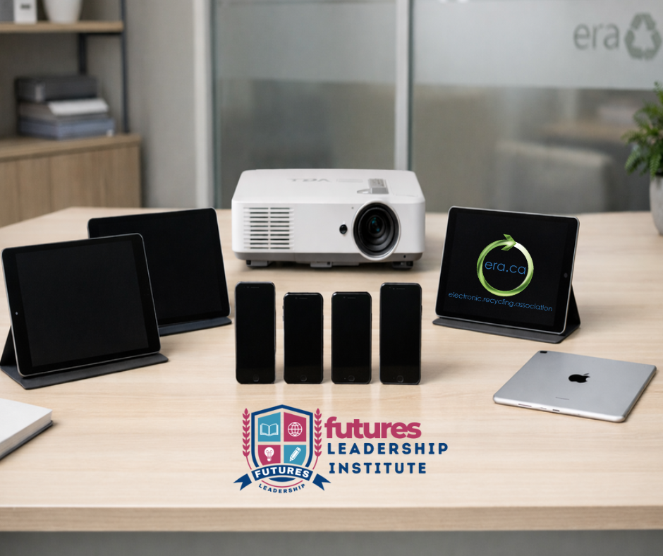 The Electronic Recycling Association (ERA) proudly supports community organizations across Canada through responsible electronics reuse and technology donations. As part of this mission, ERA donated 4 iPads, 4 mobile phones, and 1 projector to Futures Leadership Institute. This donation helps strengthen programs and improve access to essential digital tools.