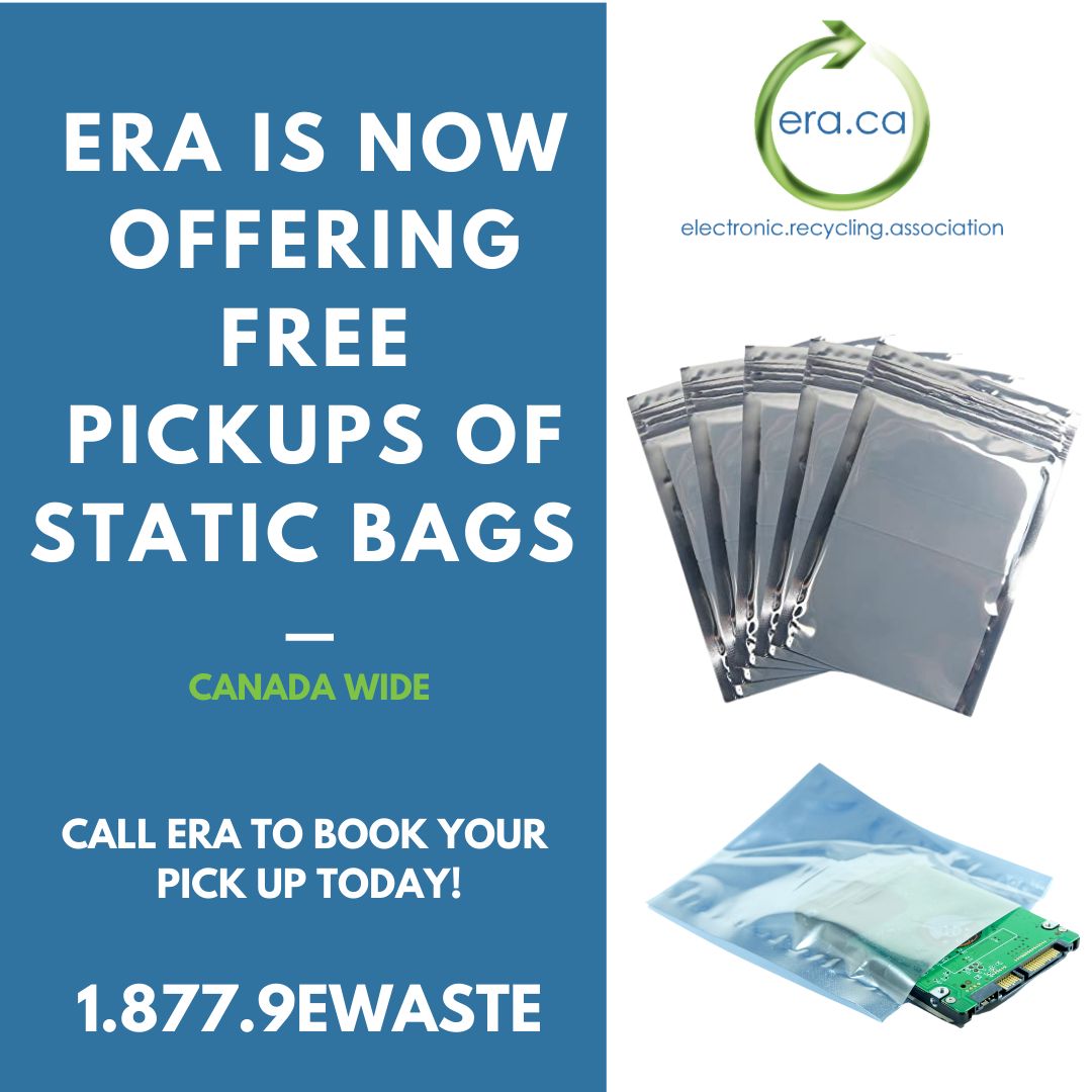 ERA will be picking up your unwanted static bags that you are no longer using. If you have 30 static bags or more we will come to your location and take them away free of charge.