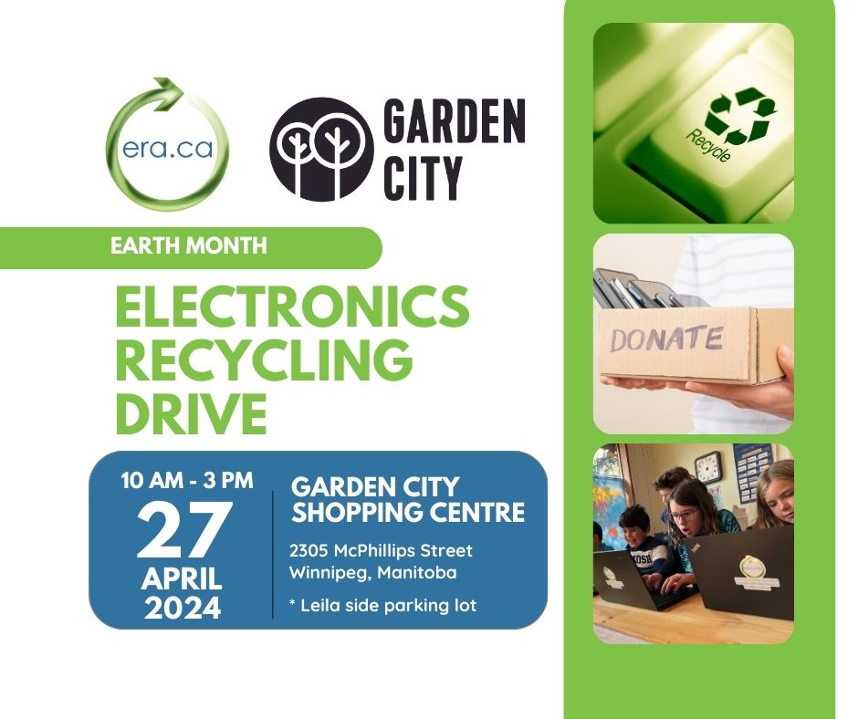 The event will take place from 10 AM to 3 PM at Garden City Shopping Centre, located at 2305 McPhillips Street, Winnipeg, Manitoba, in the Leila side parking lot. This initiative aims to make it easy and convenient for the community to responsibly dispose of their unwanted and unused electronics.