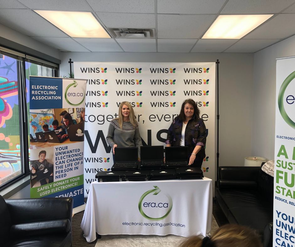 The Electronic Recycling Association (ERA) is thrilled to announce its contribution of 43 refurbished laptops to the Women in Need Society (WINS) in Calgary. The donation, aims to provide crucial technological support to WINS’ Community Resource Hubs. These hubs serve as vital centers for empowerment, offering a diverse range of programs designed to enrich the lives of women and families in need. With the addition of these laptops, WINS can now expand their reach and impact, fostering digital literacy and empowerment among their participants.