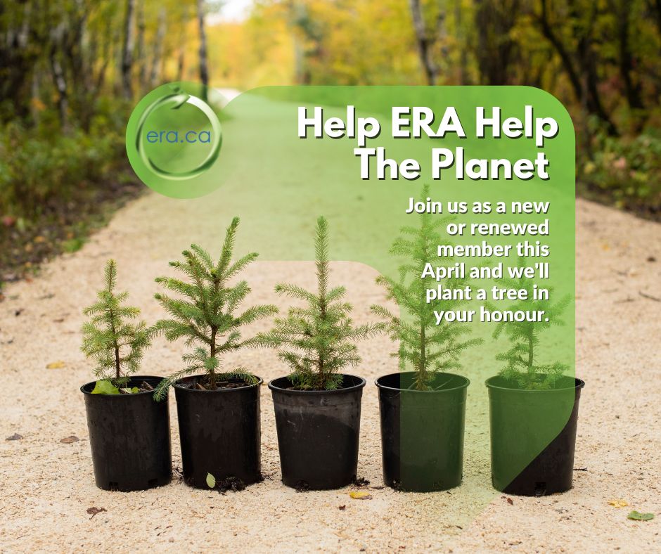 The Electronic Recycling Association (ERA), in partnership with Tree Canada, invites you to take part in our environmental initiative to make a difference in the health of people and our planet. In honor of Earth Month, during the month of April if you join ERA as a new member or as a renewed member, the ERA will plant a tree in your honour through Tree Canada’s National Greening Program.