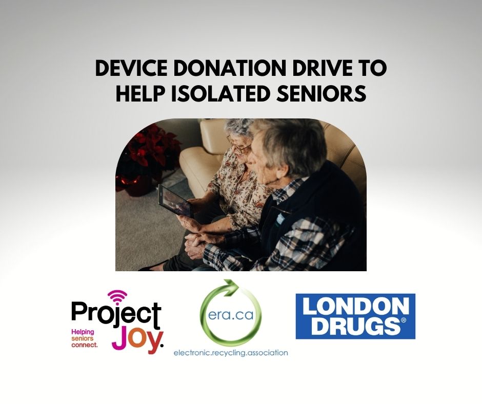 [December 16, 2021] – The second annual device drive is now underway at London Drugs to get gently-used smartphones and tablets into the hands of long-term care facilities so that isolated seniors can connect virtually with loved-ones over the holidays (running from December 14, 2021 – January 3, 2022).