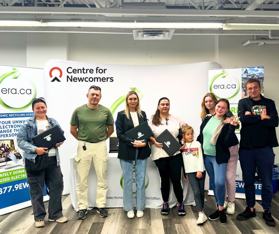 The Electronic Recycling Association (ERA) remains committed to its mission of reducing electronic waste and fostering digital inclusion across Canada. As part of this ongoing effort, ERA has provided nine refurbished laptops to the Centre for Newcomers in Calgary, Alberta – a key organization supporting immigrants and refugees as they build new lives in Canada.
