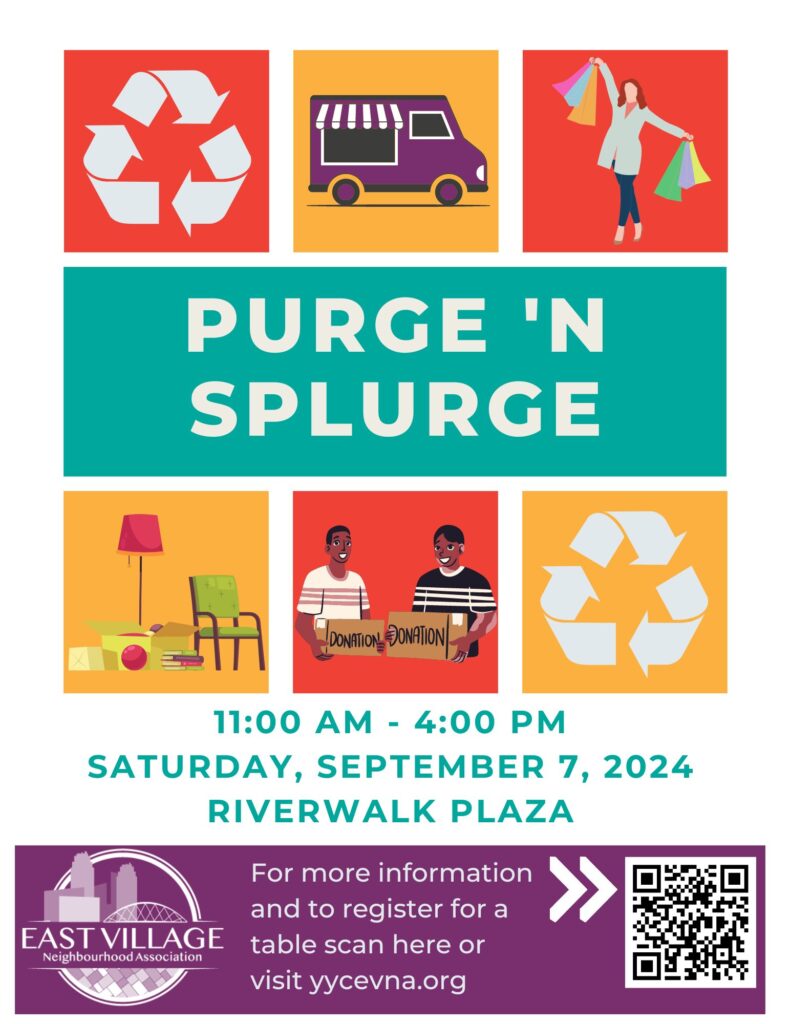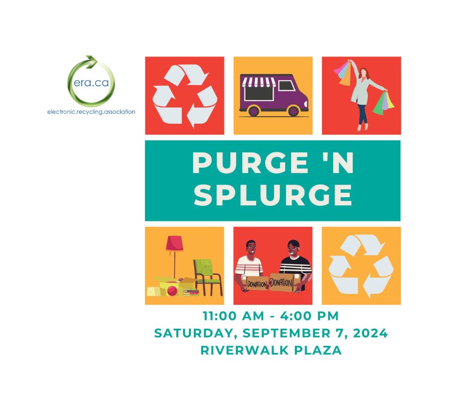 Get ready for an exciting community event that’s all about giving back, finding hidden treasures, and decluttering your home! The Electronic Recycling Association (ERA) is teaming up with the East Village Neighbourhood Association for another fantastic Purge ‘n Splurge event. Mark your calendars for Saturday, September 7, 2024, from 11:00 AM to 4:00 PM at Riverwalk Plaza (next to the Simmons Building).