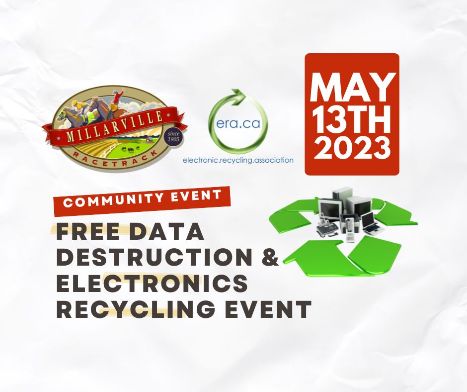 On May 13th, 2023, the Electronic Recycling Association (ERA) and the Millarville Race Track will be hosting a free data shredding and electronic recycling event called the “Community Shred and Electronic Disposal Day” at the Millarville Race Track parking lot (306097 192 Street West Millarville, AB, T0L 1K0) in Alberta, Canada.