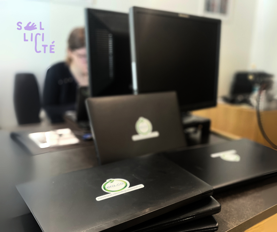The Electronic Recycling Association (ERA) is proud to support the nonprofit organization Sollicité, a community-driven initiative based in Montréal, Quebec, with a donation of five refurbished laptops. This initiative aligns with ERA’s mission to bridge the digital divide while promoting environmental sustainability.