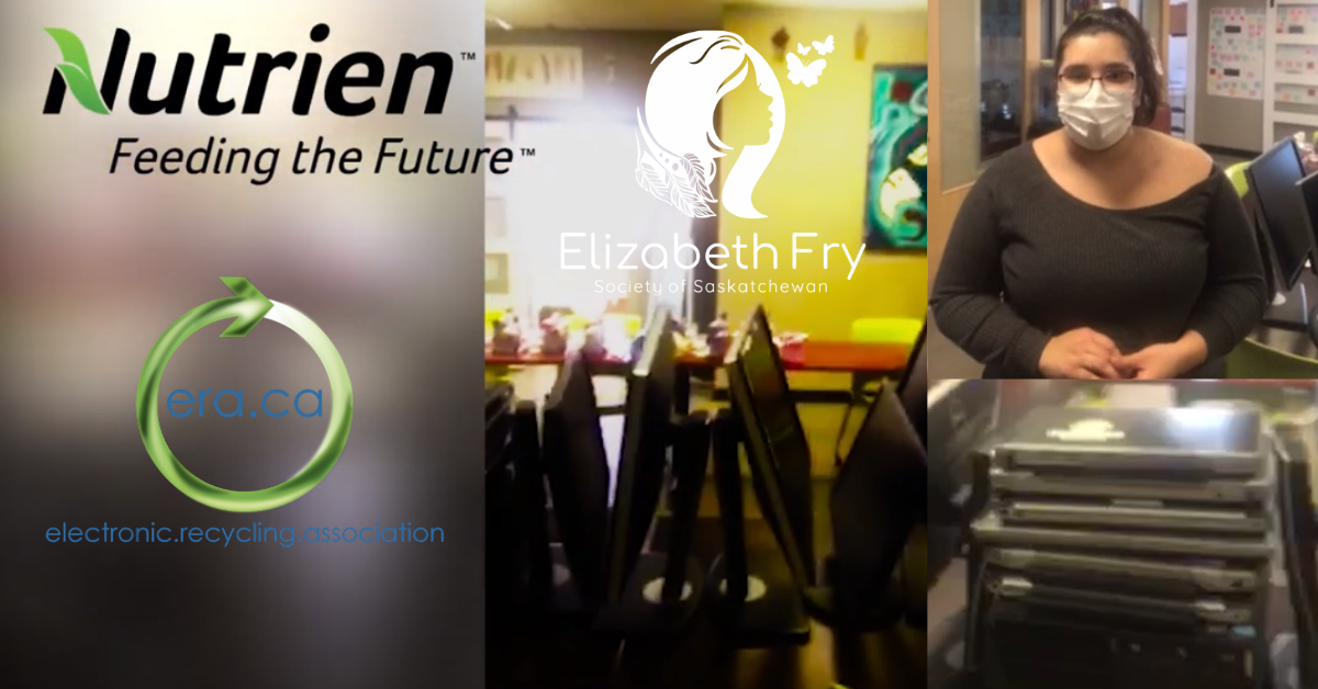 The Electronic Recycling Association (ERA) is excited to announce that with the help of our generous donor Nutrien, we donated 6 refurbished laptops, 6 additional monitors, and 2 desktop computers together to the Elizabeth Fry Society (EFS) in Saskatoon.