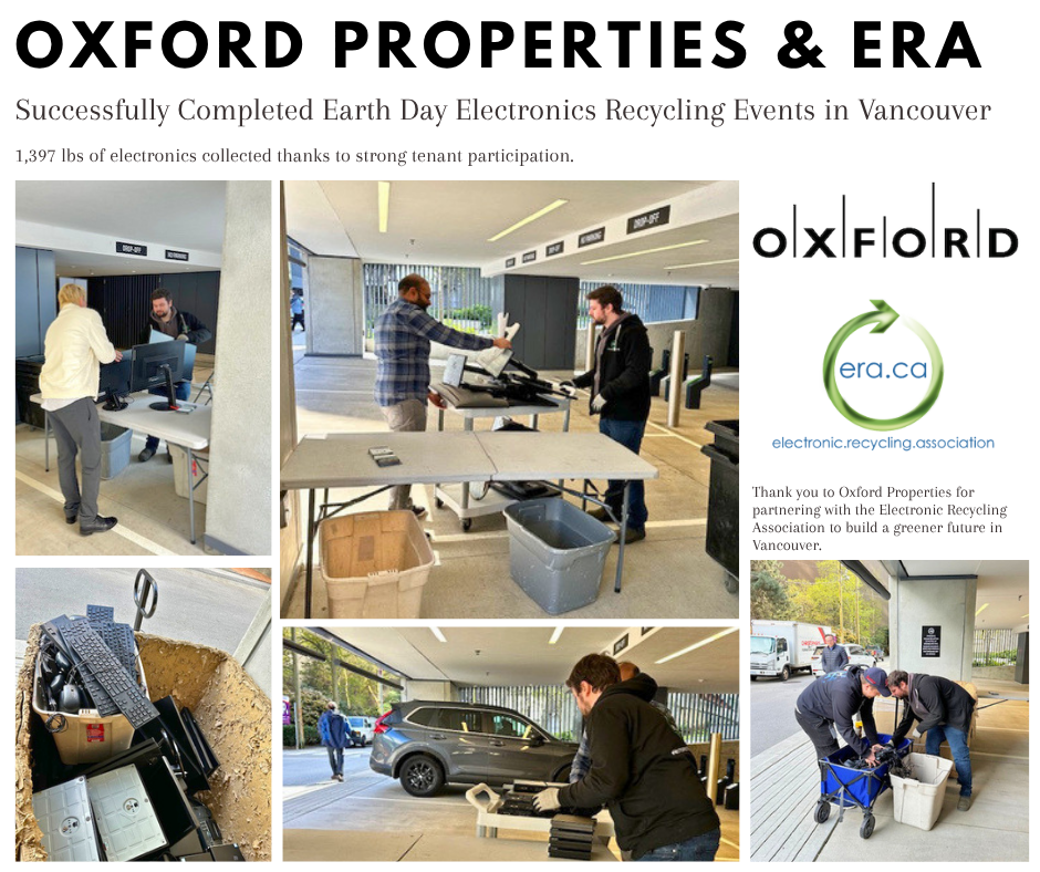 The Electronic Recycling Association is proud to announce the successful completion of two Earth Day electronics recycling events in Vancouver in partnership with Oxford Properties.