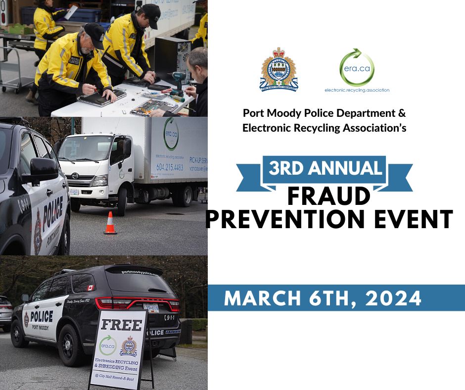 In honor of Fraud Prevention Month, the Electronic Recycling Association (ERA) and the Port Moody Police Department are partnering to help protect your private information through data destruction.