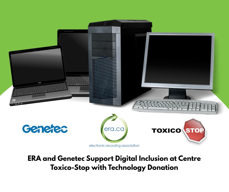 The Electronic Recycling Association (ERA) is proud to continue its commitment to reducing e-waste and bridging the digital divide through impactful partnerships. In collaboration with Genetec, a global leader in unified security solutions, ERA has donated refurbished technology to Centre Toxico-Stop, a charitable organization based in Quebec that provides support and recovery services to individuals affected by substance use.