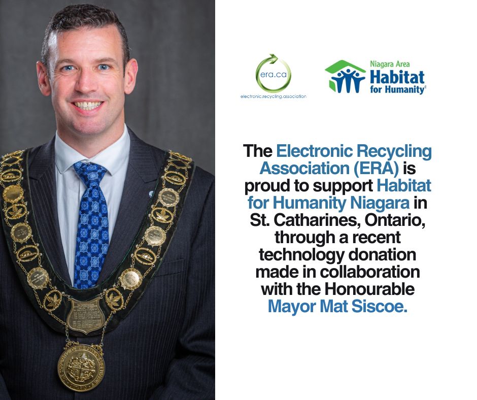 The Electronic Recycling Association (ERA) is proud to support Habitat for Humanity Niagara in St. Catharines, Ontario, through a recent technology donation made in collaboration with the Honourable Mayor Mat Siscoe.