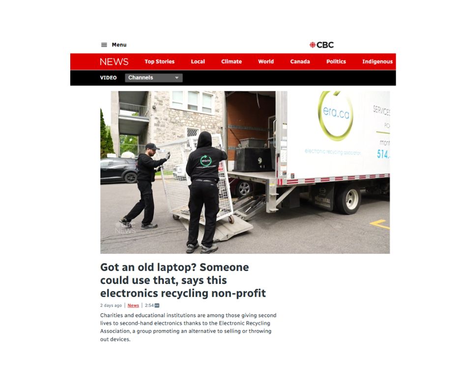 We are proud to be featured by CBC for our efforts to extend the life of electronic devices and reduce e-waste across Canada. The segment highlights ERA’s mission to provide refurbished laptops, desktops, and other devices to charities, schools, and nonprofit organizations that need them most.