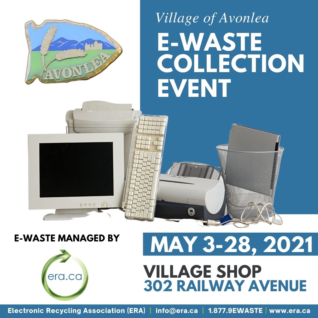 The Village of Avonlea has partnered with The Electronic Recycling Association (ERA) for an E-waste Collection Event. Throughout the month of May, you can drop off your unwanted electronics and the ERA will work to refurbish collected items and donate them to organizations and individuals in need!